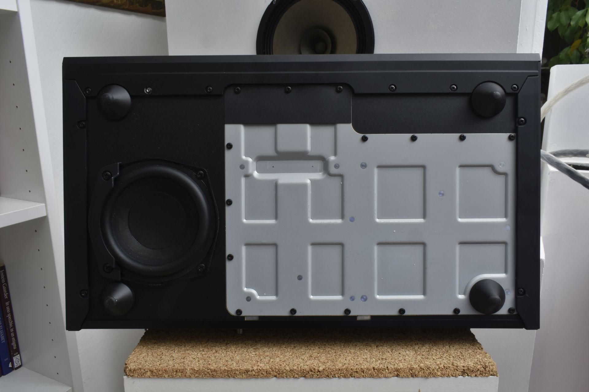 Da un certo punto di vista mancano alcuni collegamenti: un USB type B per connetterlo al computer e magari un ingresso ottico in più non sarebbero guastati... magari anche un ingresso analogico basato su RCA. Tuttavia posteriormente trovano posto, oltre al connettore per la 220V, l'antenna FM, un ingresso AUX basato su jack 3,5 ed un connettore ottico, un connettore USB type A per chiavette e dischi esterni ed un connettore per la LAN.