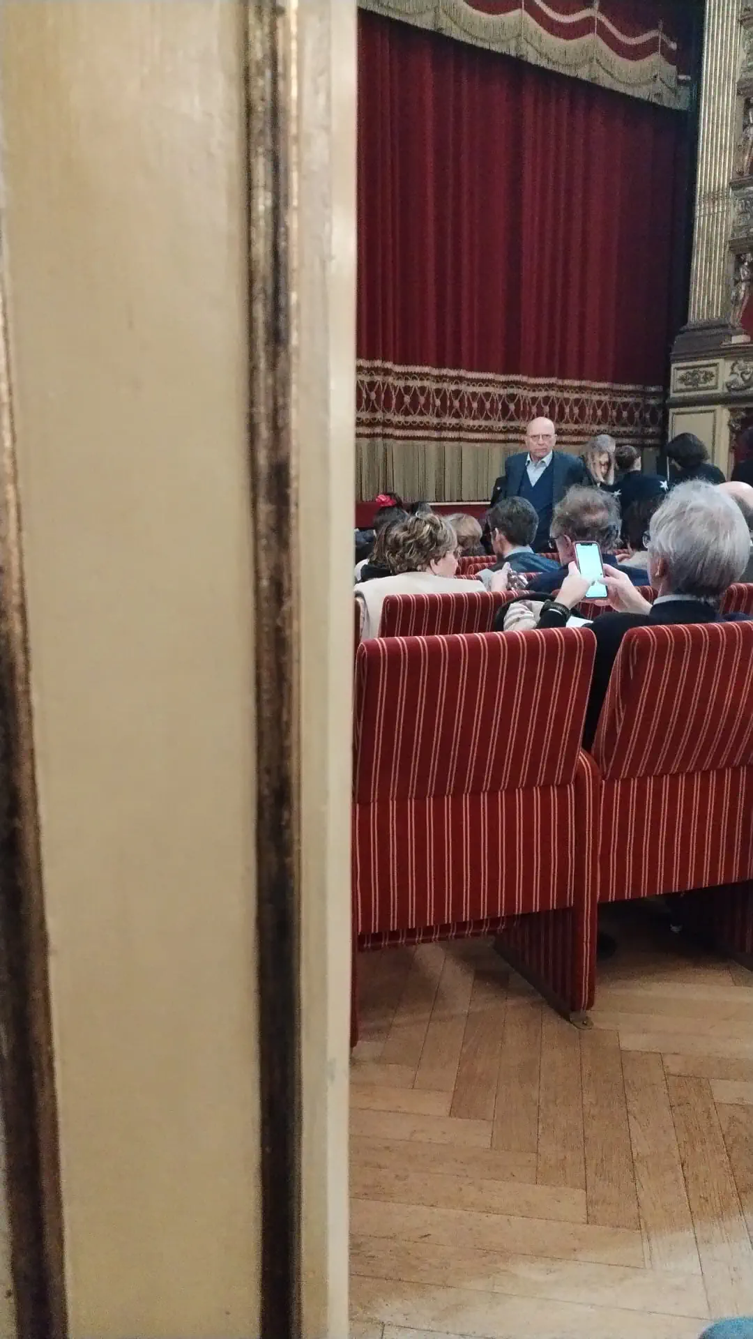 Il teatro Carignano, con i suoi decori storici e il soffitto affrescato, si illumina stasera delle luci cosmicomiche di Marinelli — più che di Calvino. L'intento è poderoso e ambizioso: trasporre in forma teatrale i racconti che Italo Calvino radunò sotto il nome di Cosmicomiche, narrazioni che esplorano grandi concetti scientifici — dalla creazione del mondo al big bang, fino alla vita come la conosciamo — attraverso l'esistenza infinita di Qfwfq, detto per gli amici Q. In scena, accanto a Marinelli che è il protagonista Q, Valentina Bellè, che interpreta la sorella di Qfwfq, G'd(w)n, Federico Brugnone, Alissa Jung, Fabian Jung, Gabriele Portoghese e Gaia Rinaldi.